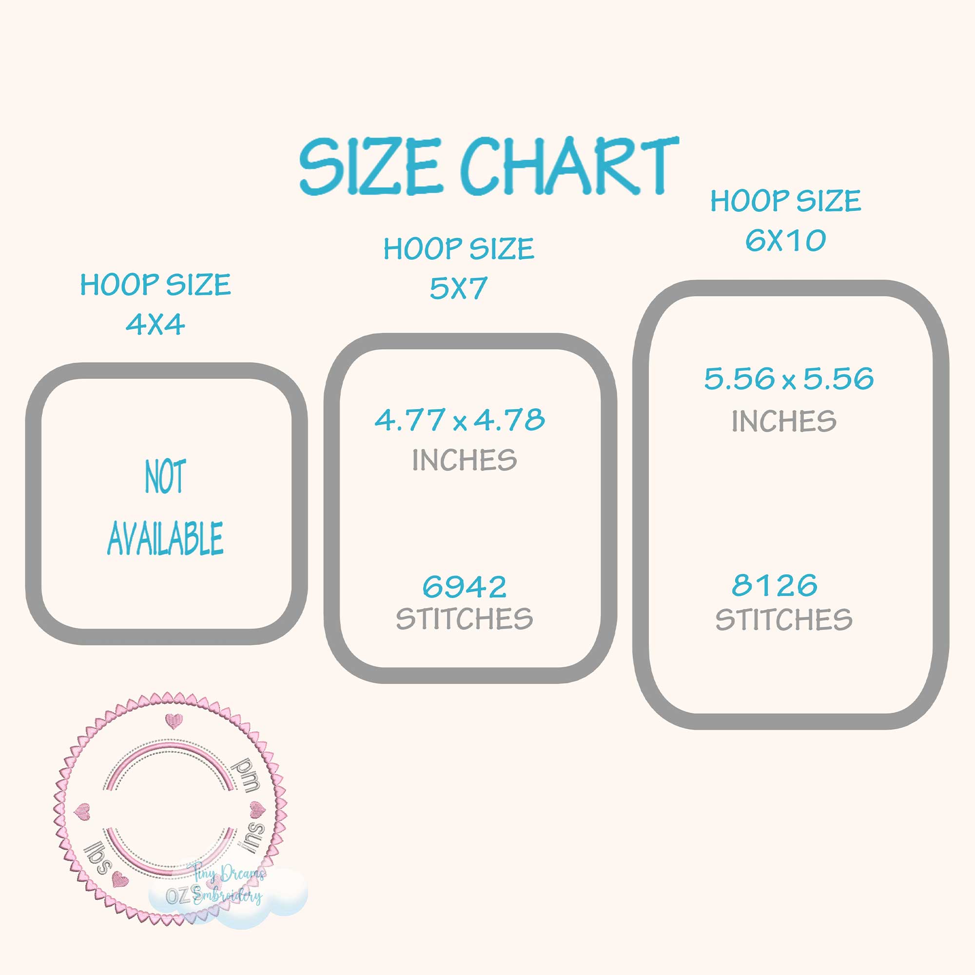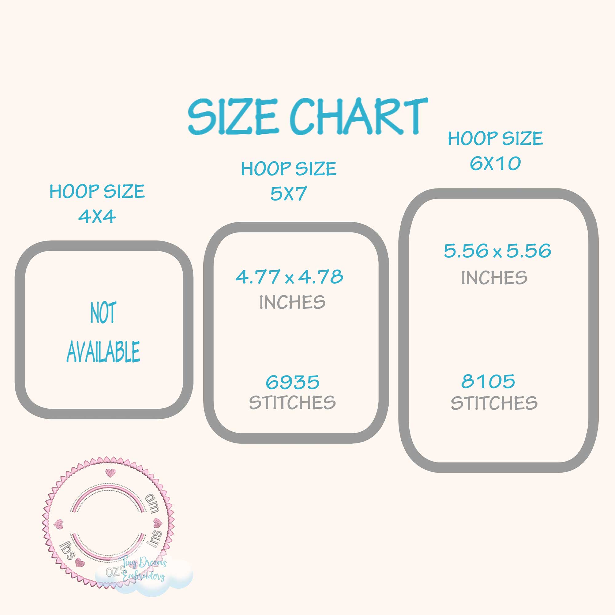 Write in the box all the baby information: Name, weight, size, date and time. Also let us know the format of your embroidery machine.