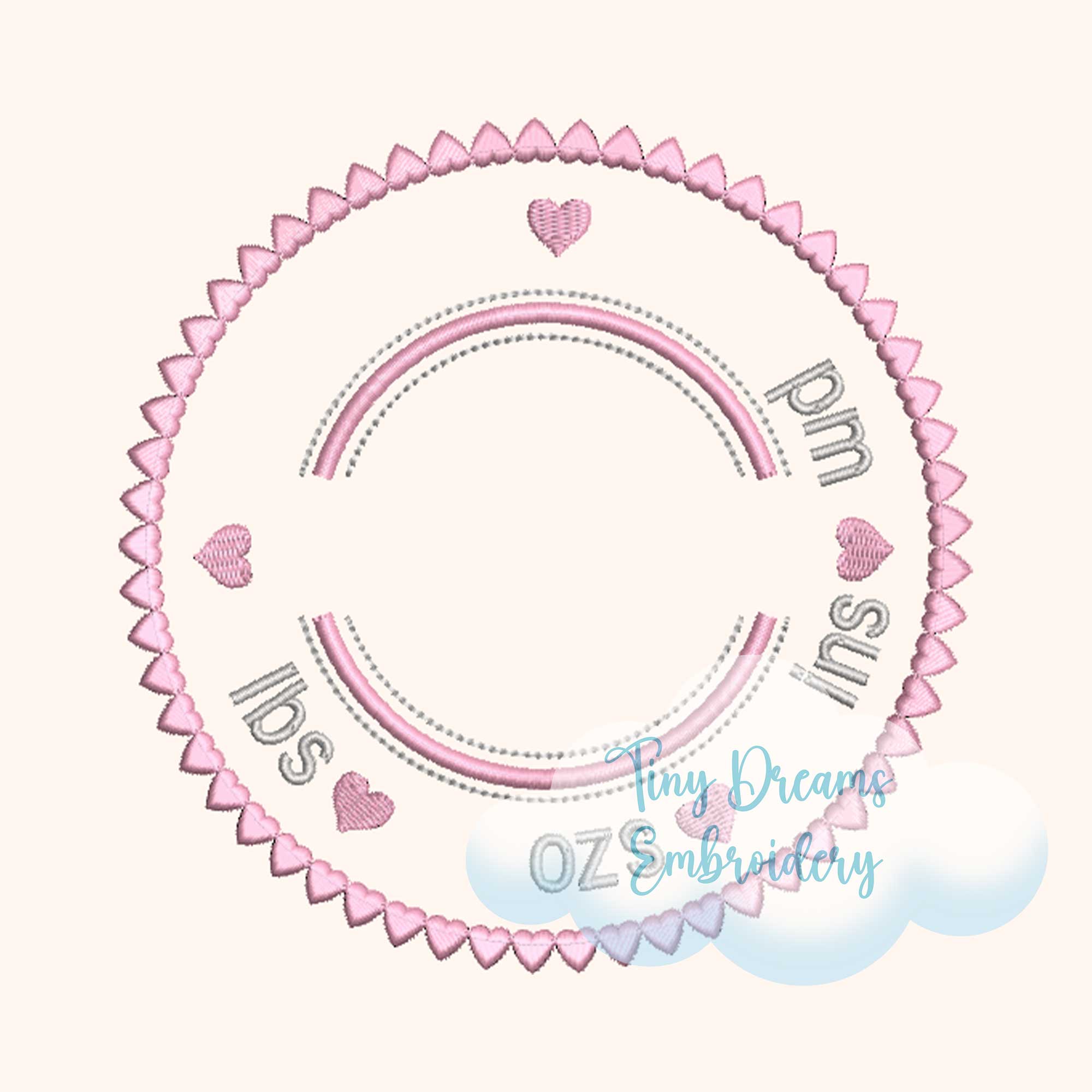 Heart Circle Birth Announcement Digital Machine Embroidery Design Baby Girl Newborn Embroidery Personalized Baby Announcement Heart Design