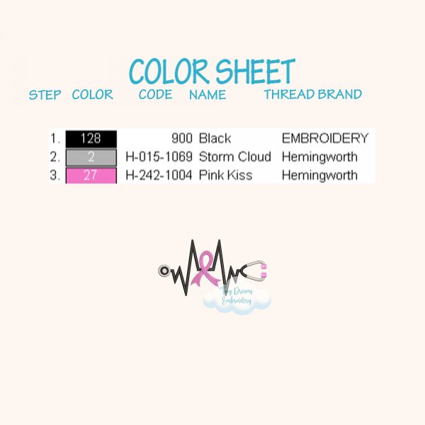 Heartbeat Nurse Embroidery Machine Design Stethoscope Pink Awareness Ribon Breast Cancer Fight (Digital Download)