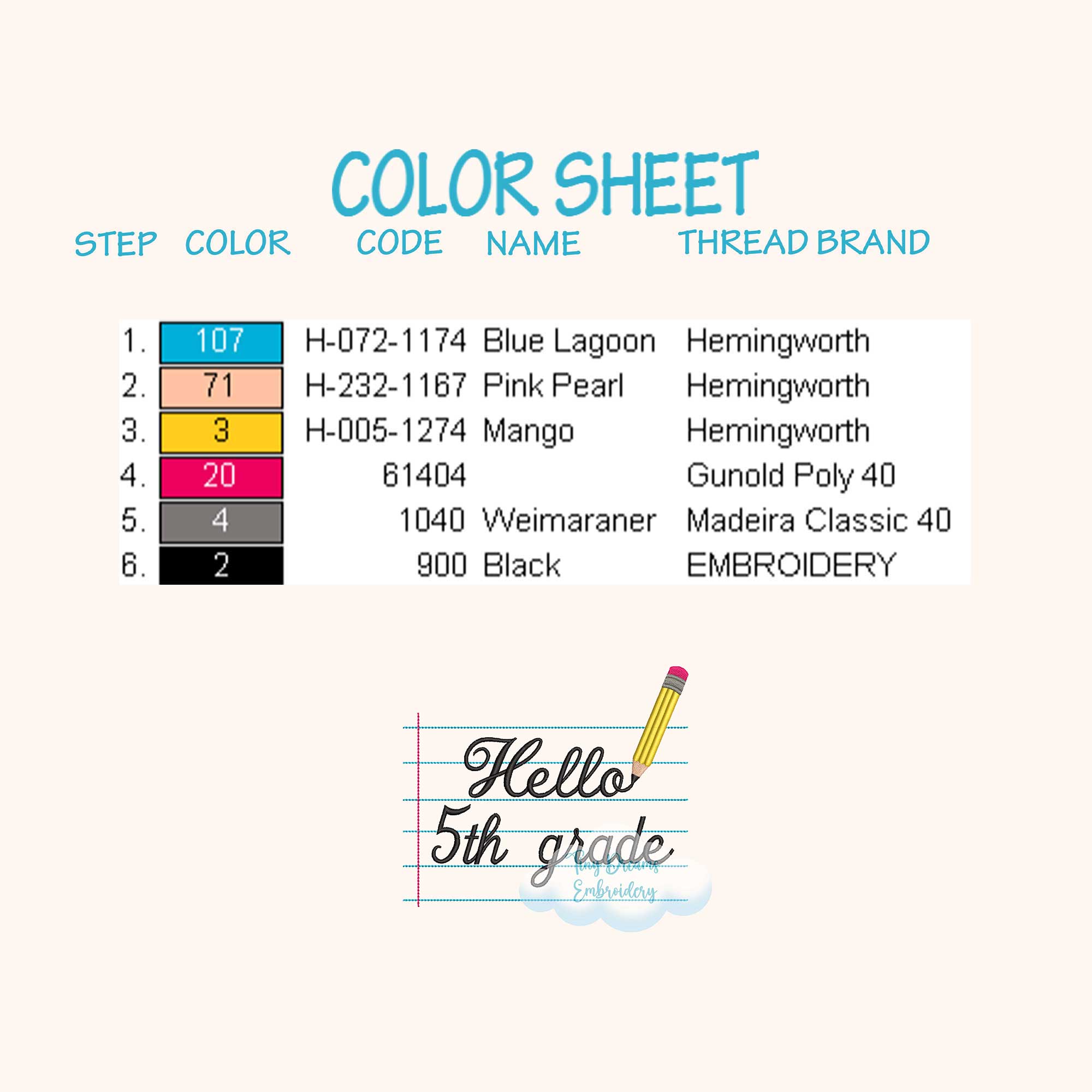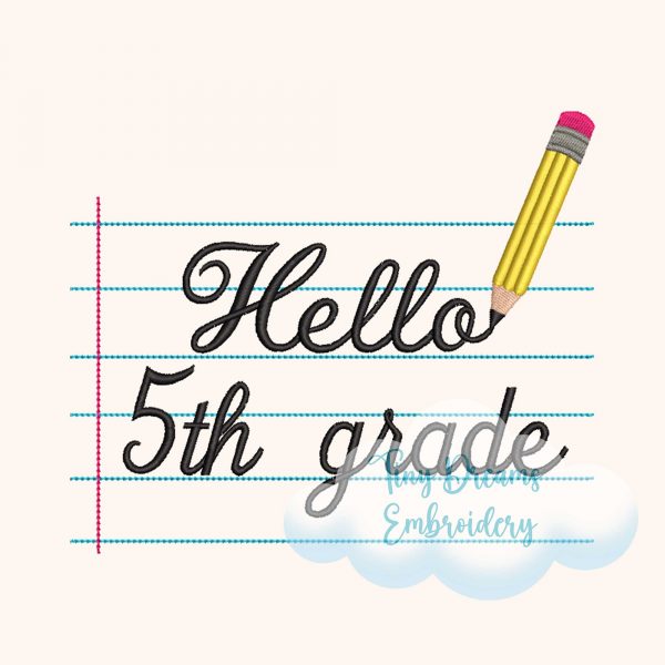 Start the school year with style using this ‘Hello Fifth Grade’ digital embroidery design. With a notebook, pencil, and fun boy and girl elements, it’s perfect for 5th grade back-to-school projects! ✏️📒
