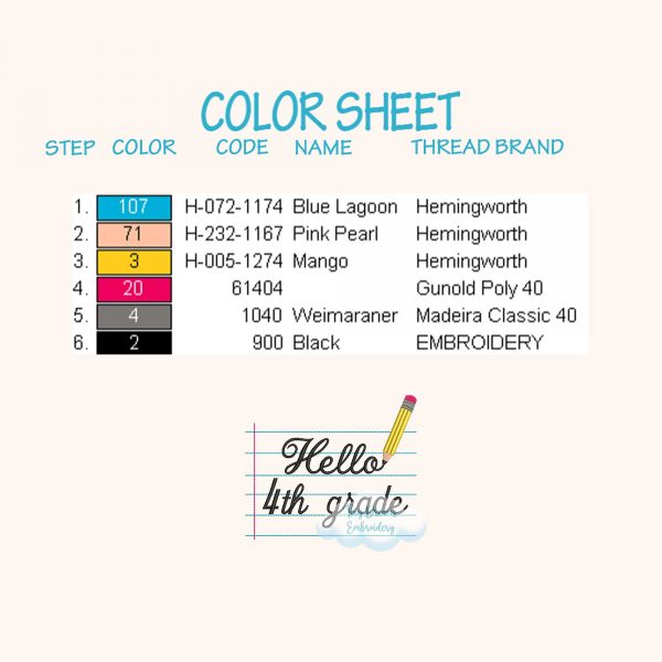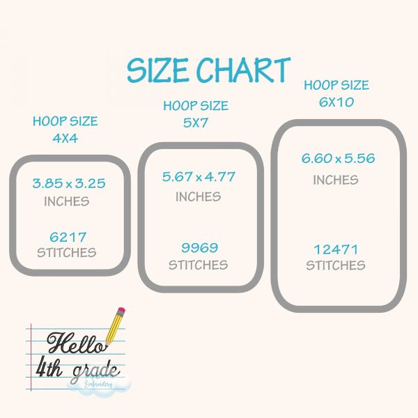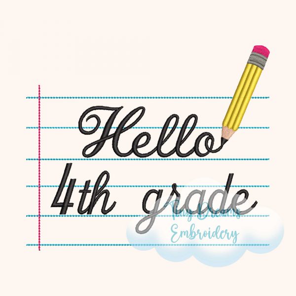 Get ready for a new school year with this ‘Hello Fourth Grade’ digital embroidery design. Featuring a notebook, pencil, and playful boy and girl elements, it’s perfect for 4th grade back-to-school projects! ✏️📚