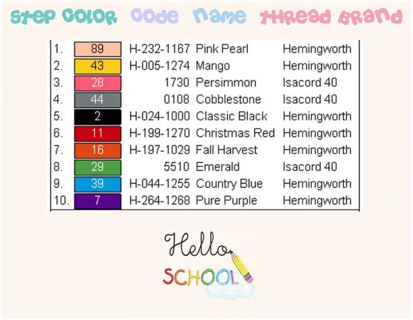 The design comes in the following formats: PES, DST, EXP, HUS, JEF, VIP, VP3, XXX