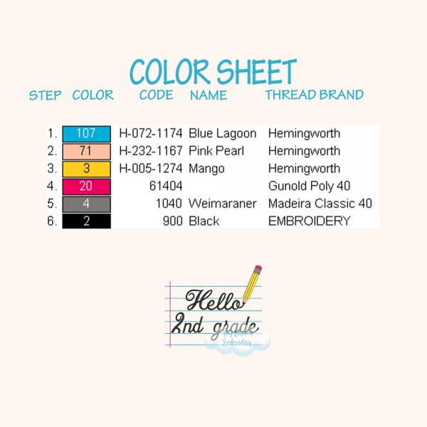 Celebrate the new school year with this ‘Hello Second Grade’ digital embroidery design. Featuring a notebook, pencil, and fun boy and girl details, it’s perfect for back-to-school projects! ✏️📓