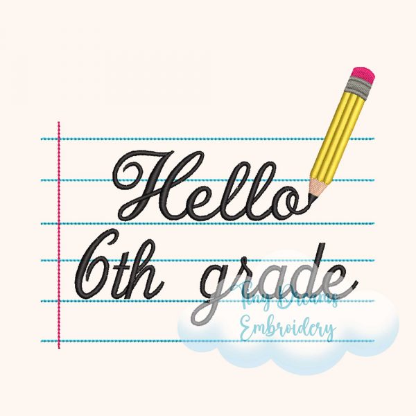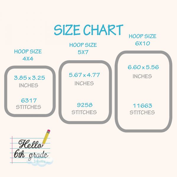Kick off the school year with this ‘Hello Sixth Grade’ digital embroidery design. Featuring a notebook, pencil, and fun boy and girl elements, it’s perfect for 6th grade back-to-school projects! ✏️📔