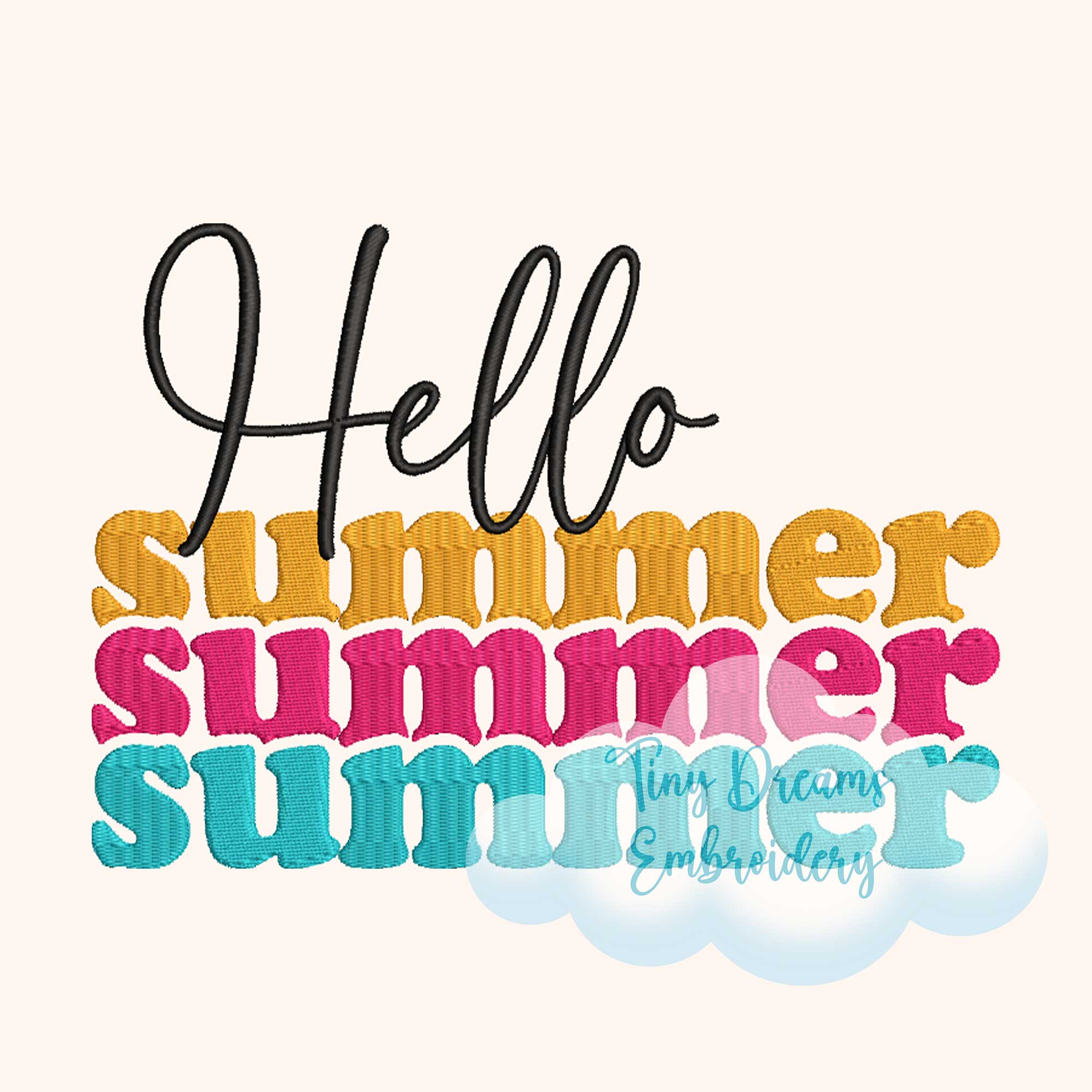 Hello Summer Digital Machine Embroidery Design Summer Lettering Design Embroidery Summer Season Embroidery Design Hello Embroidery Design