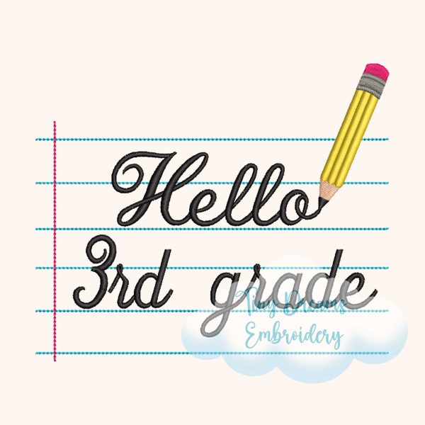 Say hello to a new school year with this ‘Hello Third Grade’ digital embroidery design. Featuring a notebook, pencil, and fun boy and girl details, it’s perfect for 3rd grade back-to-school projects! ✏️📘