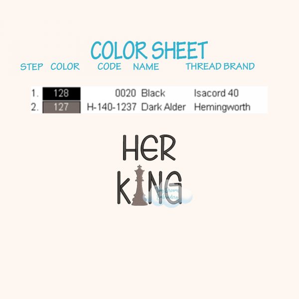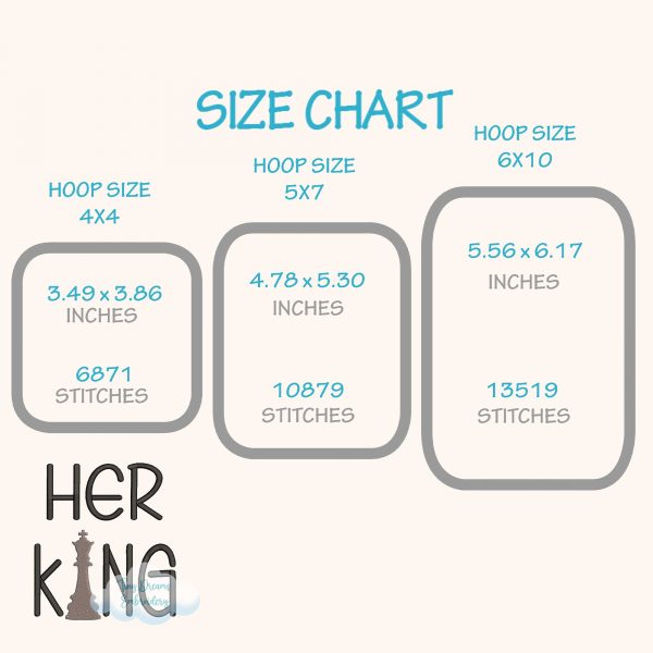 Celebrate your king with this elegant “Her King” digital machine embroidery design featuring a bold chess piece motif. Perfect for stitching a royal touch on gifts for your husband or special someone.
