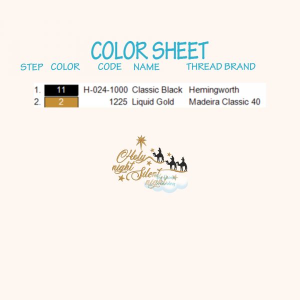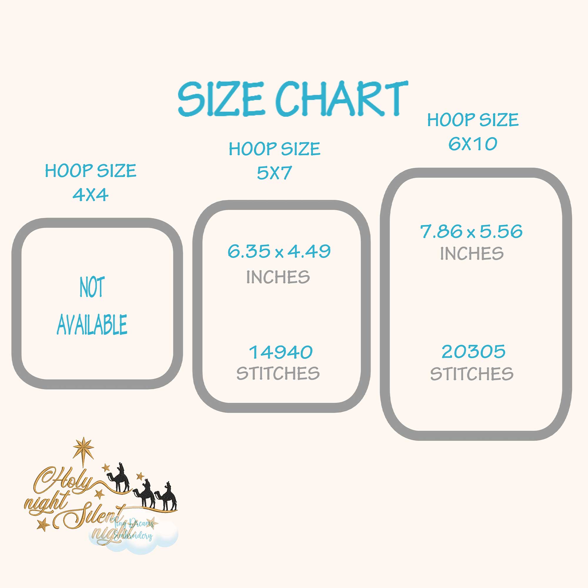 This Holy Night digital machine embroidery design beautifully depicts the Three Kings under a shining star, perfect for Christmas and Epiphany projects. Capture the peaceful essence of Silent Night with this meaningful holiday embroidery.