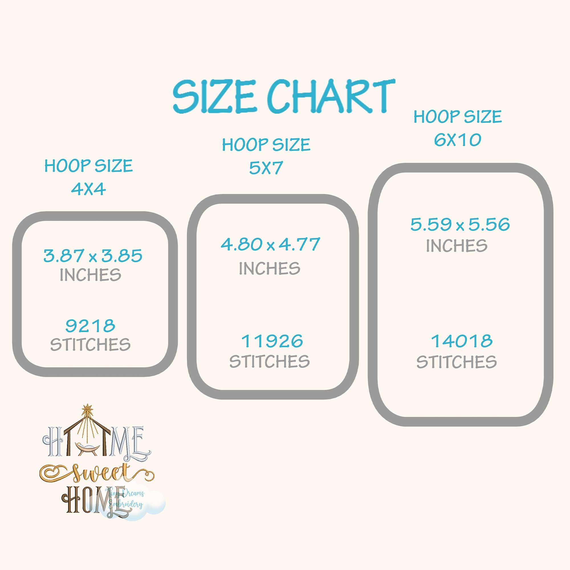 This Home Sweet Home digital machine embroidery design showcases the manger scene with Baby Jesus, perfect for celebrating the true meaning of Christmas. Add a warm, religious touch to your holiday projects with this beautiful nativity design.