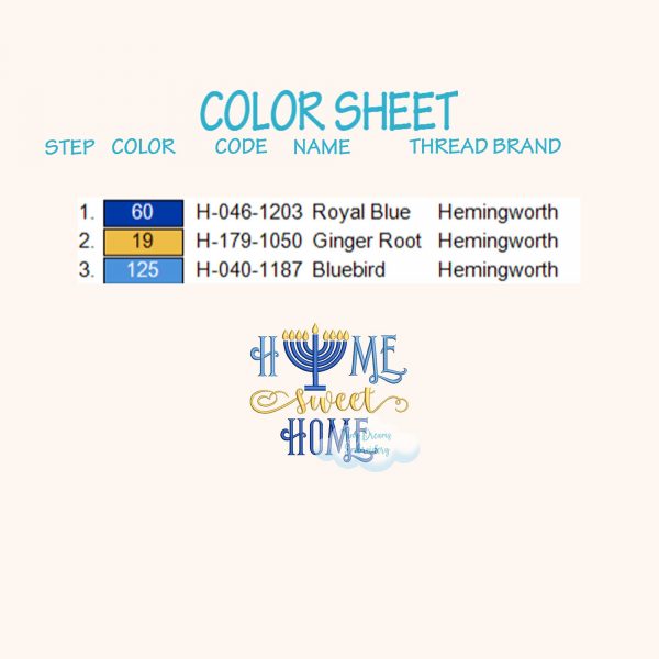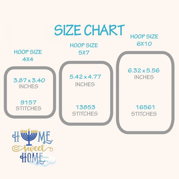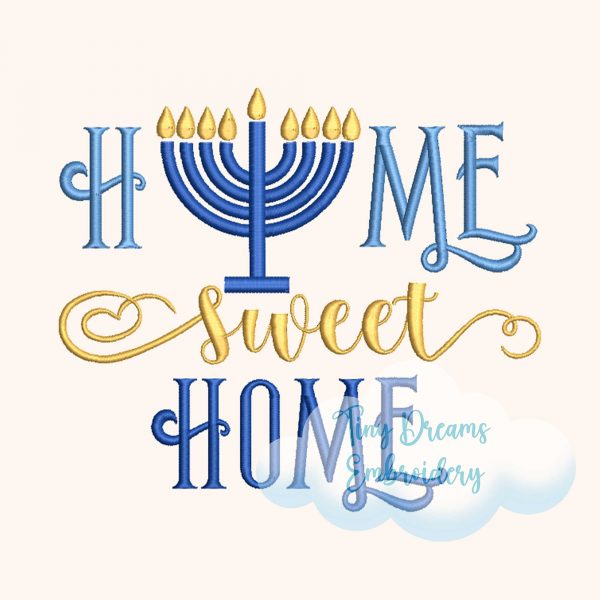 This Home Sweet Home digital machine embroidery design showcases a menorah with glowing candles, perfect for celebrating Hanukkah. The design also features the Jewish Star, adding a beautiful and meaningful touch to your holiday projects.