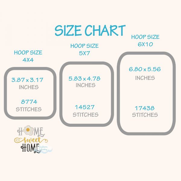 Infuse warmth into your kitchen with our ‘Home Sweet Home’ digital machine embroidery design, featuring a charming egg motif. This delightful creation is the perfect addition to your home decor, adding a touch of culinary flair to your space.