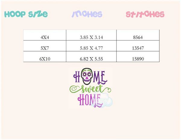 Be the first to review “Home sweet home halloween skull embroidery design”