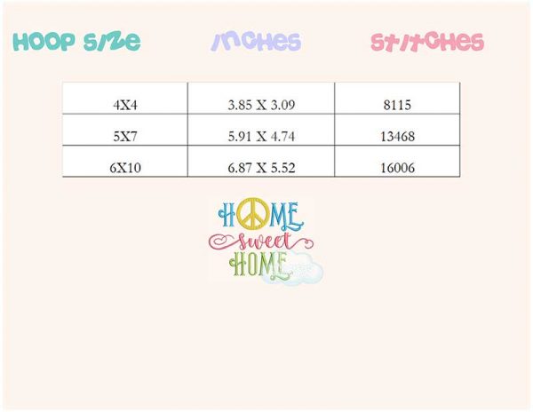 The design comes in the following formats: PES, DST, EXP, HUS, JEF, VIP, VP3, XXX