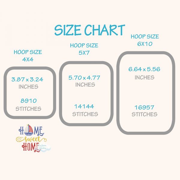 Set sail for a coastal haven with our Sailboat digital machine embroidery design, paired elegantly with the comforting touch of ‘Home Sweet Home’ embroidery. This nautical-themed embroidery captures the essence of beachside summers, evoking the tranquil spirit of the sea and marine adventures.