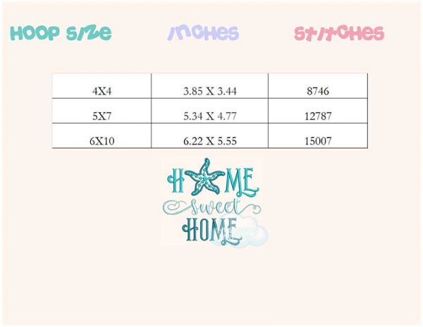 Be the first to review “Home sweet home starfish embroidery design”