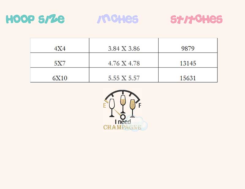 The design comes in the following formats: PES, DST, EXP, HUS, JEF, VIP, VP3, XXX