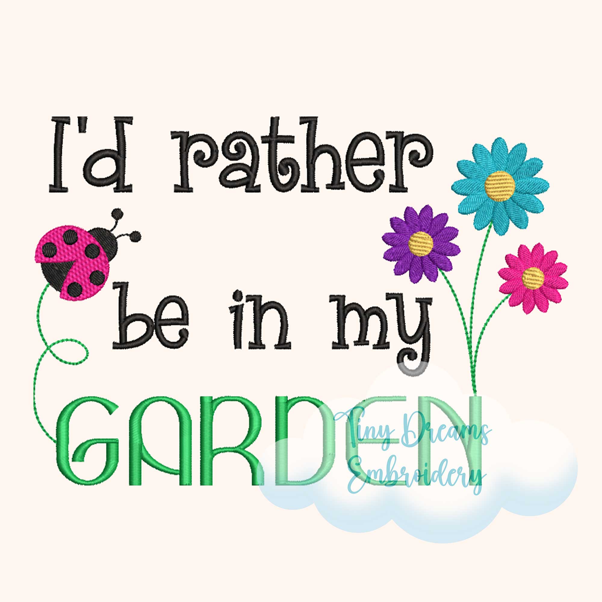 Bring your love for nature to life with our I’d Rather Garden Digital Machine Embroidery Design, featuring charming daisies and playful ladybugs. This spring-inspired design is perfect for flower garden embroidery projects full of color and joy.