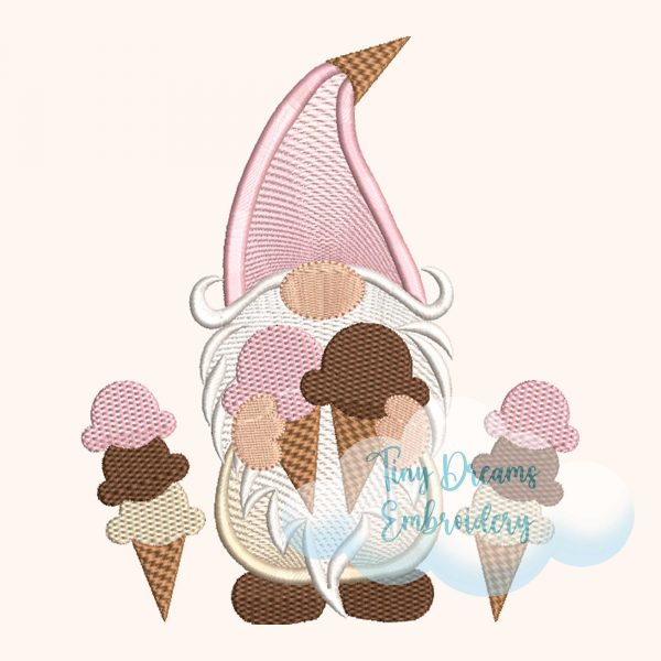 Embrace the joys of summer with our delightful gnome embroidery design, featuring an adorable gnome holding an ice cream cone. This sweet pattern is perfect for adding a touch of warmth and fun to your kitchen or for creating a charming piece for a summer-themed nursery.
