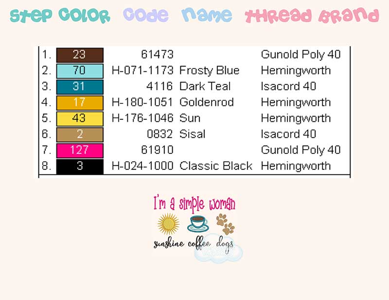 Be the first to review “I’m a simple woman sunshine coffee dogs embroidery design”