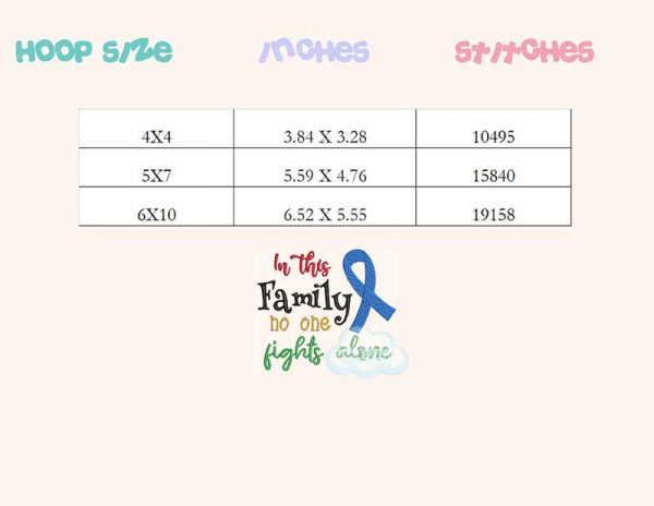 In this family no one fights alone embroidery design