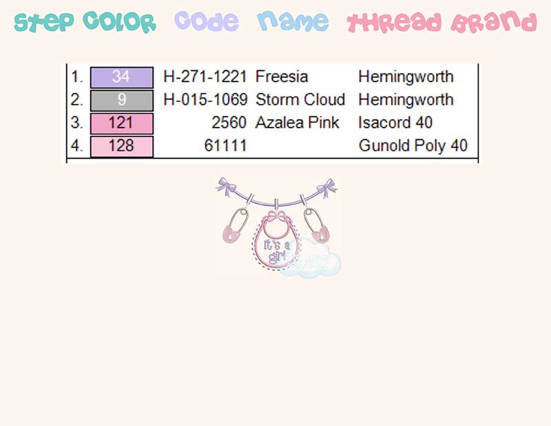 Be the first to review “It’s a girl baby bib and safety pin garland embroidery design”