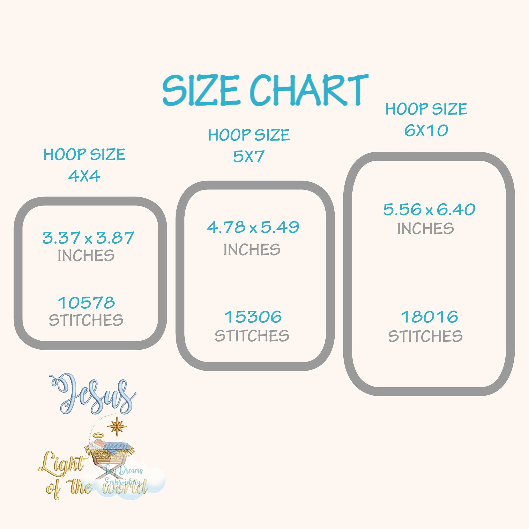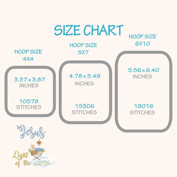 This Jesus Light digital machine embroidery design beautifully showcases the Bethlehem Star and the manger scene, perfect for celebrating the true meaning of Christmas. Add a religious and heartfelt touch to your holiday projects with this elegant design.