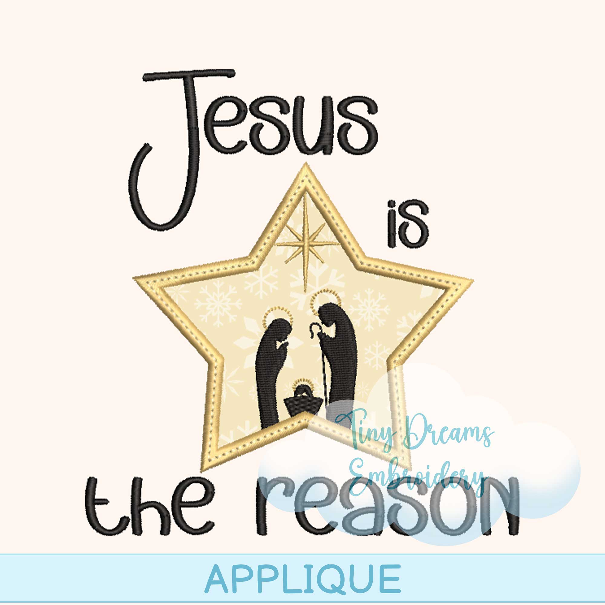 Celebrate the true meaning of the season with this ‘Jesus is the Reason’ Applique digital embroidery design. Featuring the Nativity scene and Bethlehem Star, it’s perfect for heartfelt Christmas creations! ✨🎄