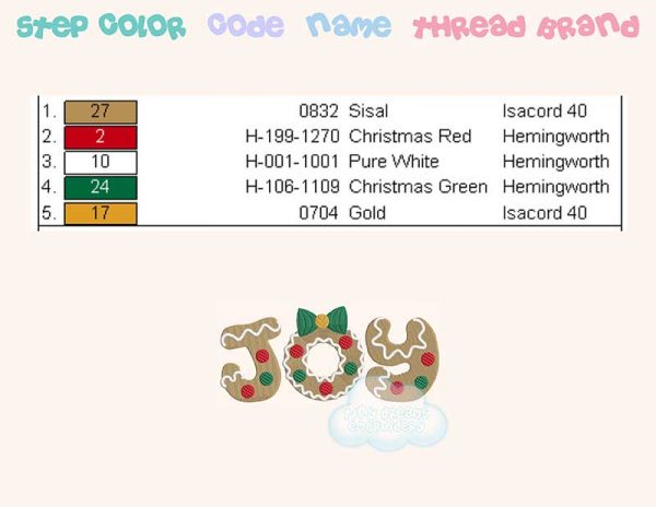 The design comes in the following formats: PES, DST, EXP, HUS, JEF, VIP, VP3, XXX