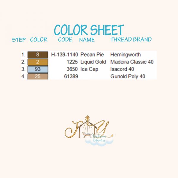 This Joy Nativity Christmas digital machine embroidery design features Baby Jesus, the Virgin Mary, and the manger star, perfect for celebrating the true meaning of Christmas. Add a heartfelt, religious touch to your holiday projects with this beautiful design.