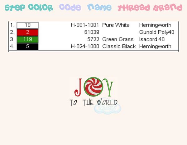 Be the first to review “Joy to the world christmas peppermint candy embroidery design”