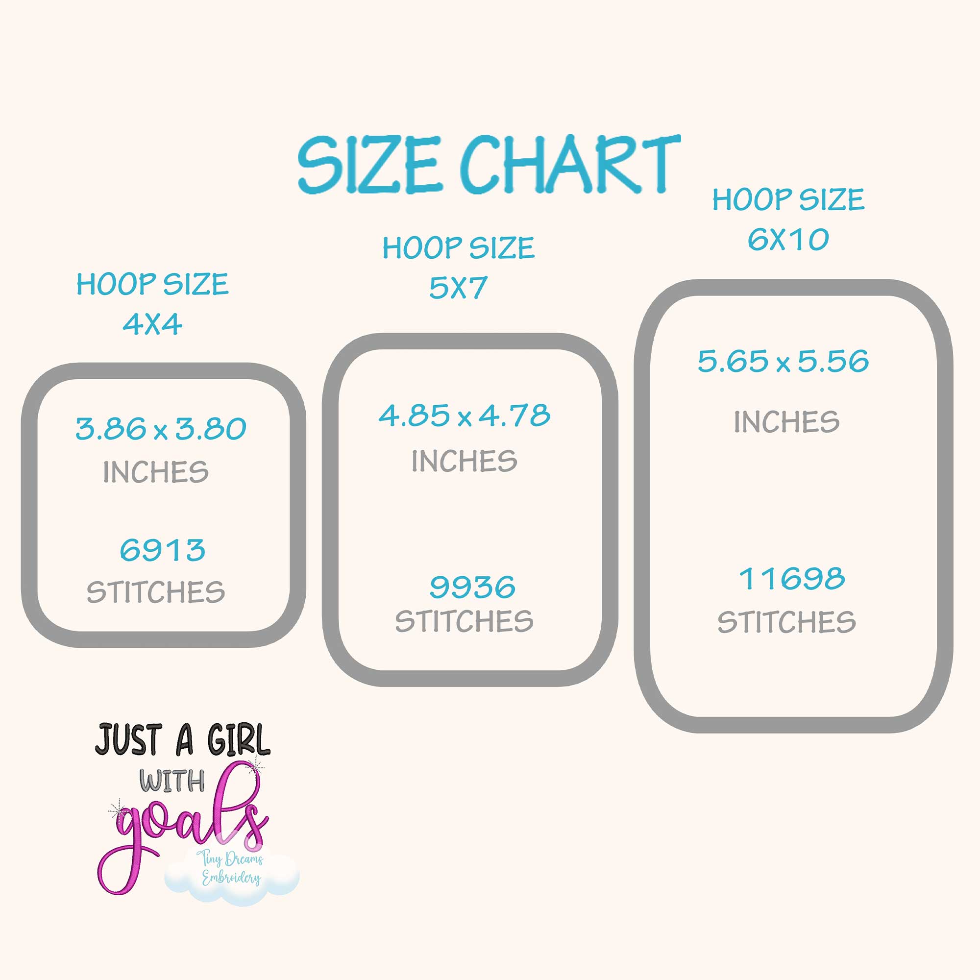 Celebrate confidence and ambition with this Just a Girl with Goals Embroidery Design, featuring a sparkle-bright style that adds personality and inspiration to any project. Perfect for clothing, accessories, décor, and gifts, this digital download includes 3 sizes for bold, creative stitching. ✨💖