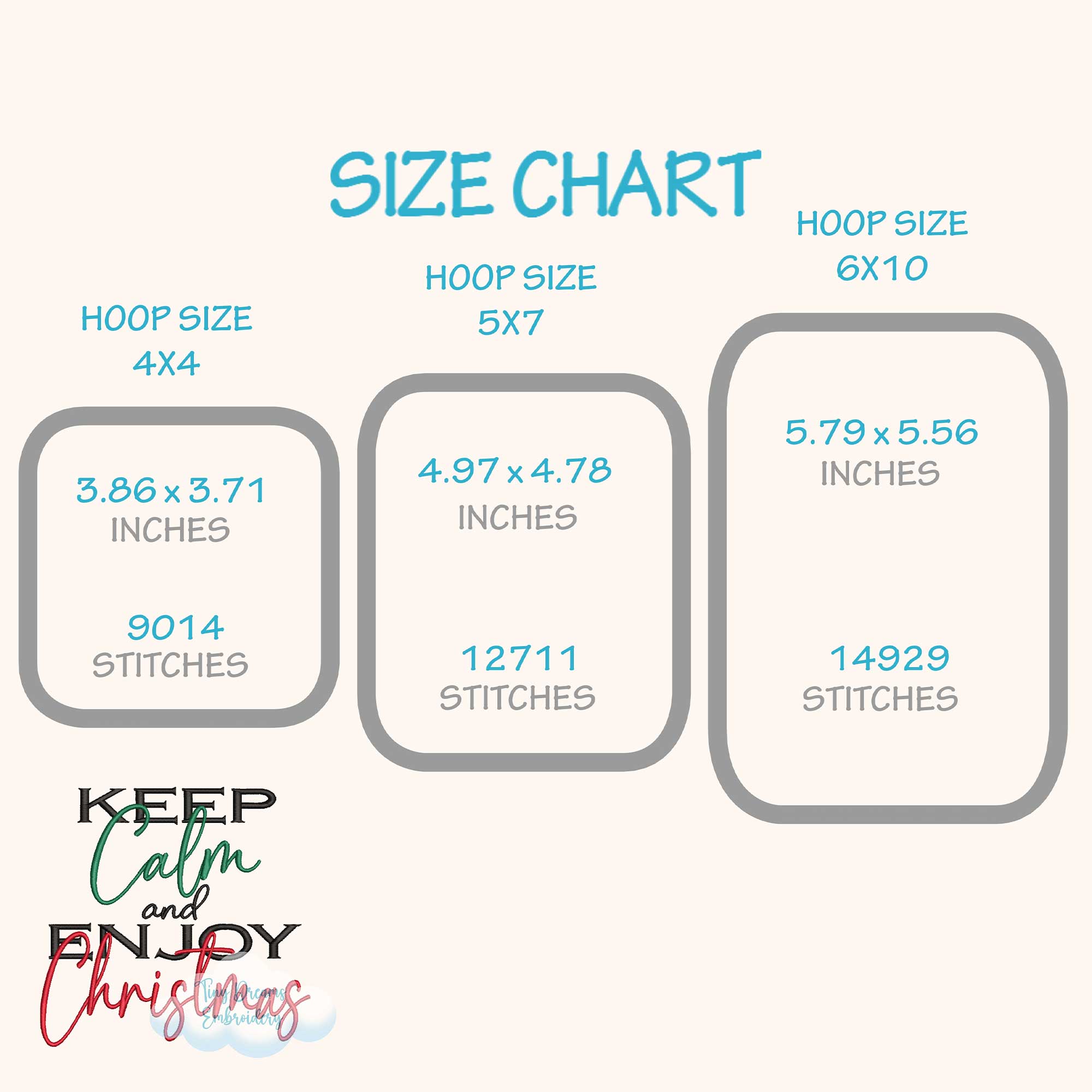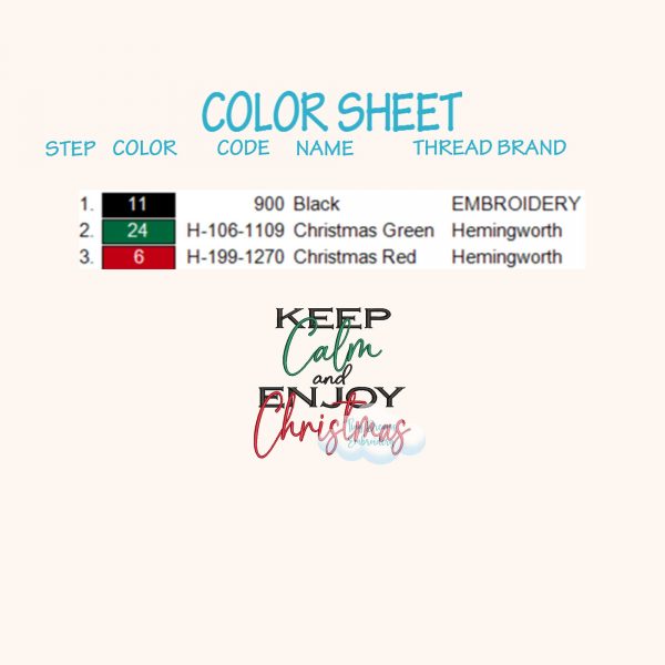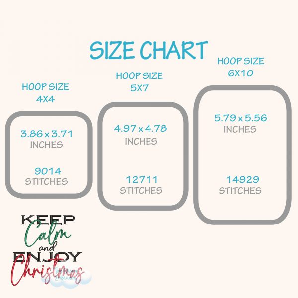 Celebrate the holiday spirit with this digital machine embroidery design featuring “Keep Calm and Enjoy Christmas.” Perfect for adding festive charm, it’s an ideal choice for your Christmas and holiday projects.