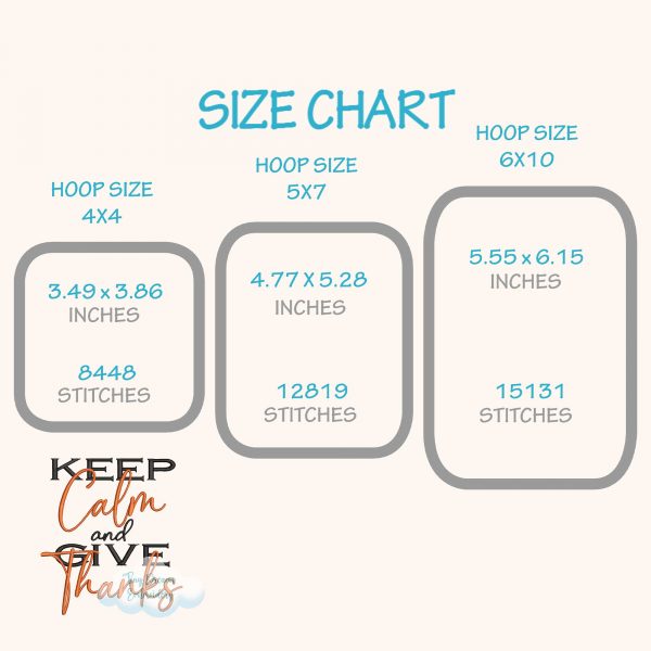 Embrace the season of gratitude with this digital machine embroidery design featuring “Keep Calm and Give Thanks.” Perfect for Thanksgiving and beyond, it’s a beautiful reminder to stay thankful and happy.
