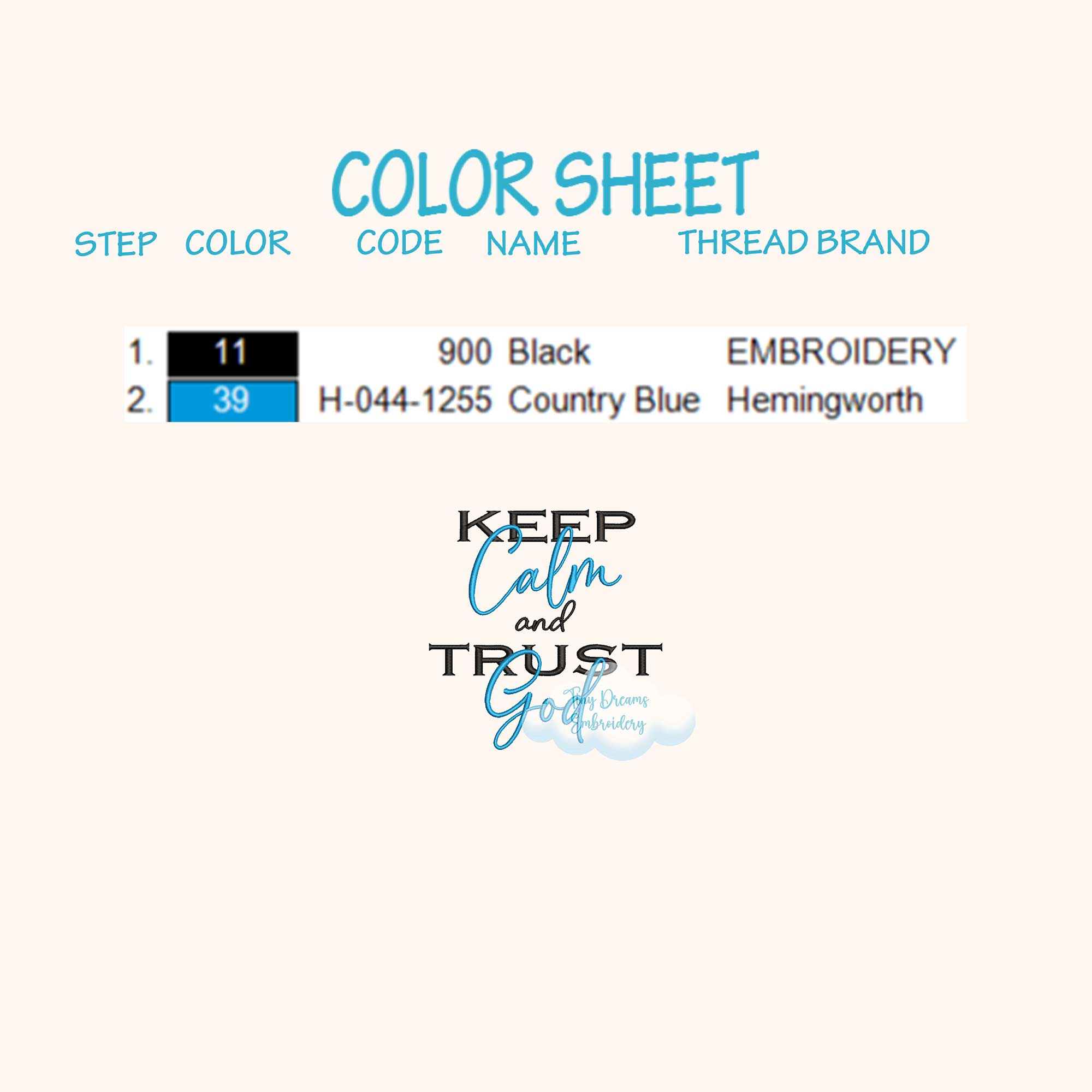 Stay inspired with this digital machine embroidery design featuring “Keep Calm and Trust God.” Perfect for faith-filled projects, it’s a heartfelt reminder to believe, give thanks, and embrace trust in Jesus.