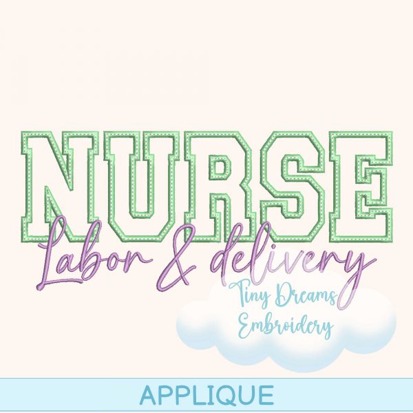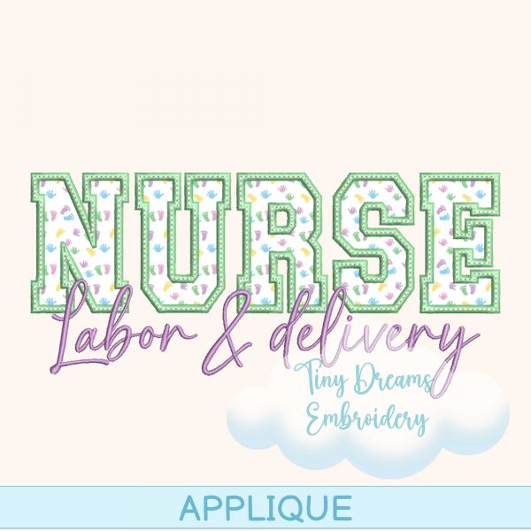 Craft digital machine embroidery designs catering to labor and delivery nurses, featuring baby nurse and medical appliqué motifs.