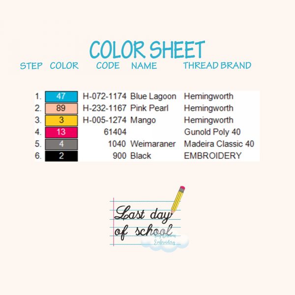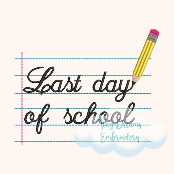 Celebrate the excitement of the Last Day of School with this cheerful Digital Machine Embroidery Design. Featuring playful notebook and pencil motifs, it’s perfect for both school boy and girl-themed creations.
