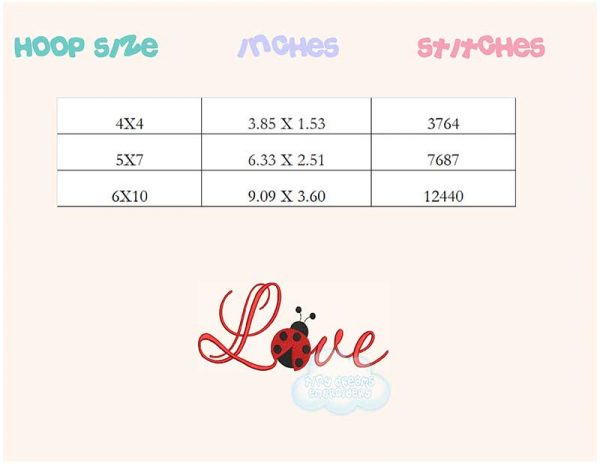 The design comes in the following formats: PES, DST, EXP, HUS, JEF, VIP, VP3, XXX
