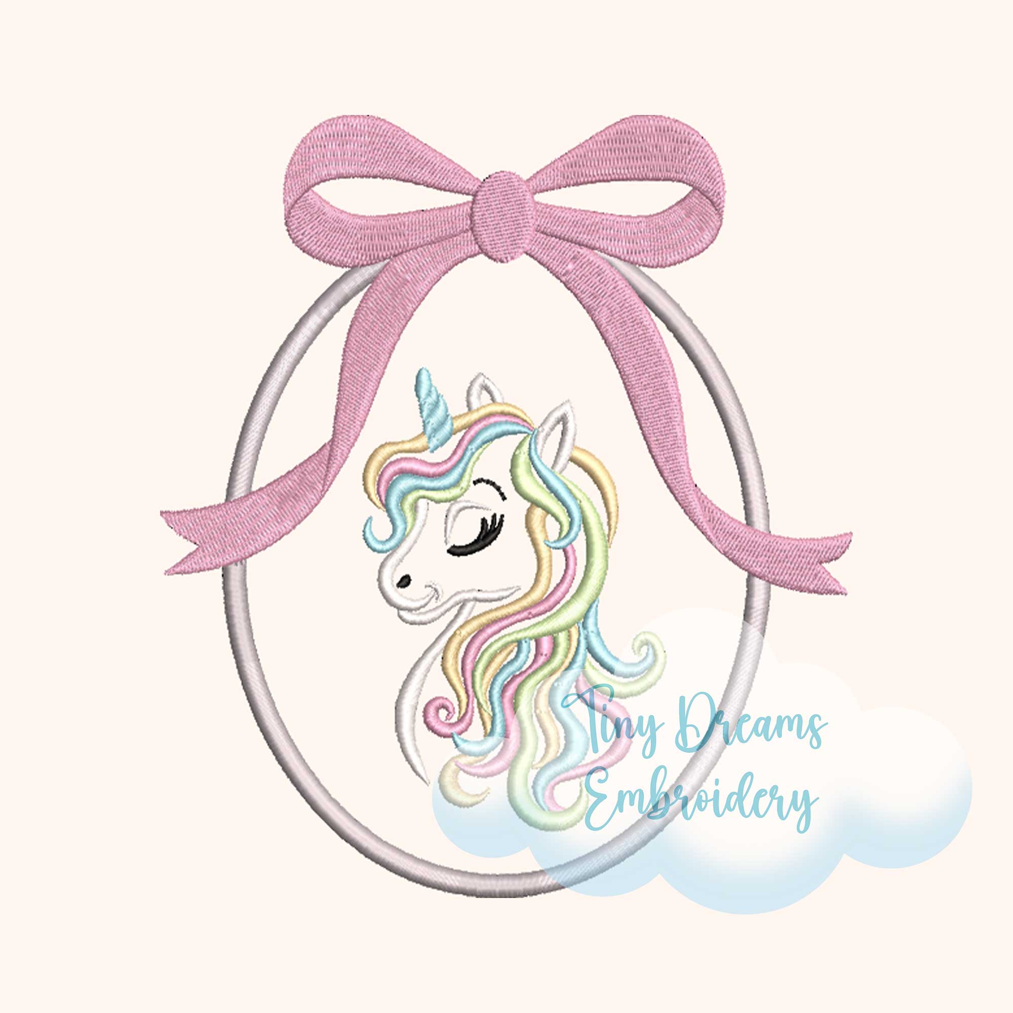 Add a touch of enchantment to your projects with this Magic Unicorn Embroidery Design, featuring a charming cameo framed by an elegant bow. Perfect for clothing, accessories, décor, and magical handmade gifts, this digital download includes 3 sizes for dreamy, storybook stitching. 🦄🎀