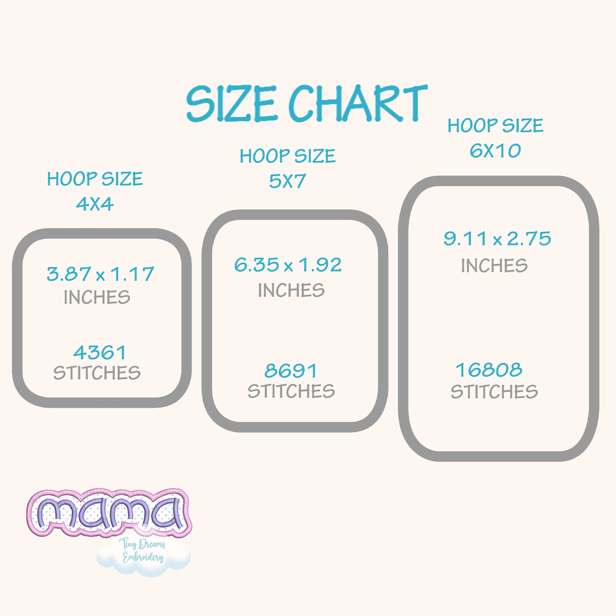 The Mama Patch digital machine embroidery design showcases sweet applique lettering perfect for celebrating moms. Ideal for Mother’s Day, this charming embroidery adds a loving touch to garments, gifts, and keepsakes.