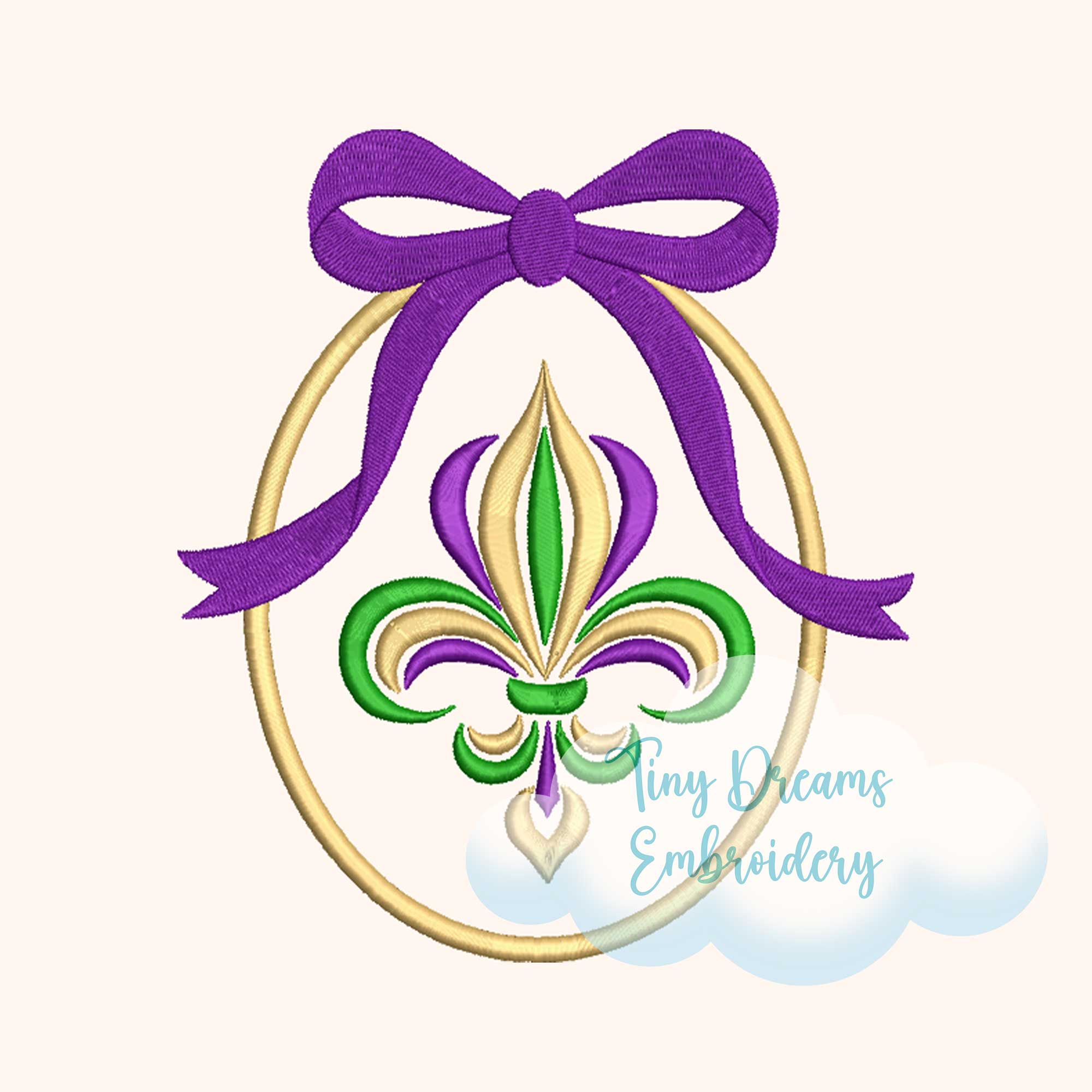 Celebrate Mardi Gras tradition with this Carnival Fleur de Lis Embroidery Design, featuring a classic cameo framed by an elegant bow. Perfect for festive décor, accessories, clothing, and celebration projects, this digital download includes 3 sizes for vibrant and stylish stitching. 🎭🎀