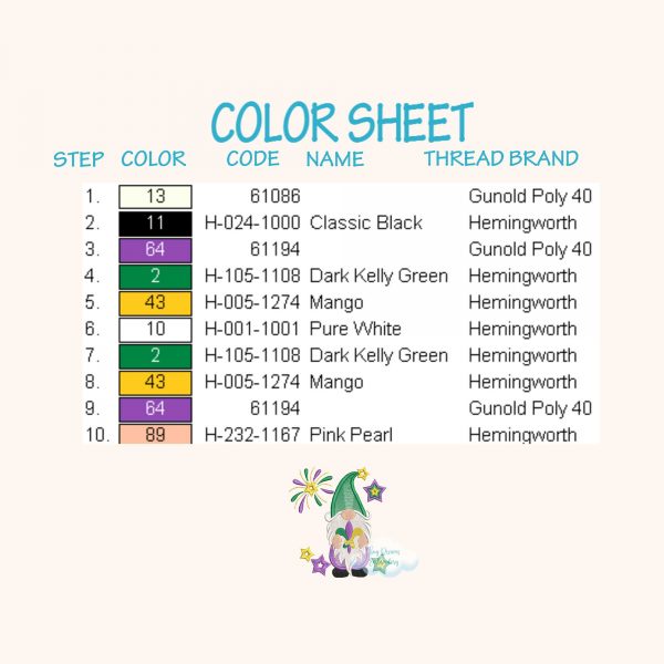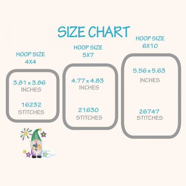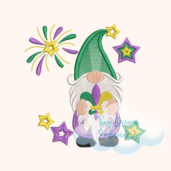 Bring a touch of Mardi Gras magic to your embroidery projects with our delightful ‘Mardi Gras Gnome’ digital design. This cheerful gnome, adorned with festival-inspired elements like fireworks and carnival motifs, is ready to add a festive flair to your creations.