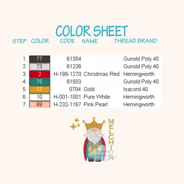 Embrace the essence of the nativity story with our Melchior Gnome embroidery design. This whimsical rendition merges the charm of a gnome with the regal presence of one of the Three Wise Men, offering a unique and heartwarming touch to your holiday décor.