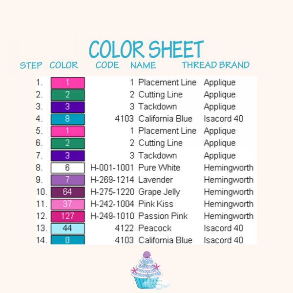 This digital machine embroidery design combines a mermaid cupcake motif with a seashell applique, creating a charming sea-themed embroidery featuring a girl and starfish cupcake. Ideal for adding a whimsical touch to your embroidery projects, especially those inspired by the ocean and marine life.