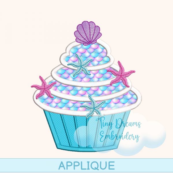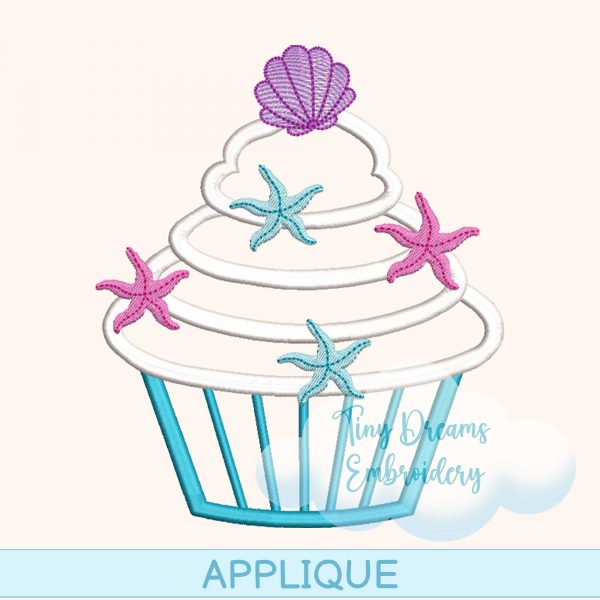 Mermaid Cupcake Digital Machine Embroidery Design Applique Seashell Embroidery Design Applique Sea Girl Starfish Cupcake Embroidery Applique