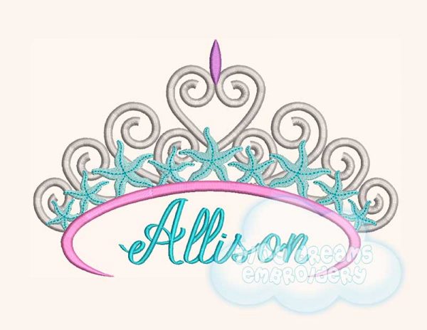 Mermaid Princess crown name/monogram (name/monogram/font not included) digital embroidery design