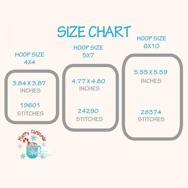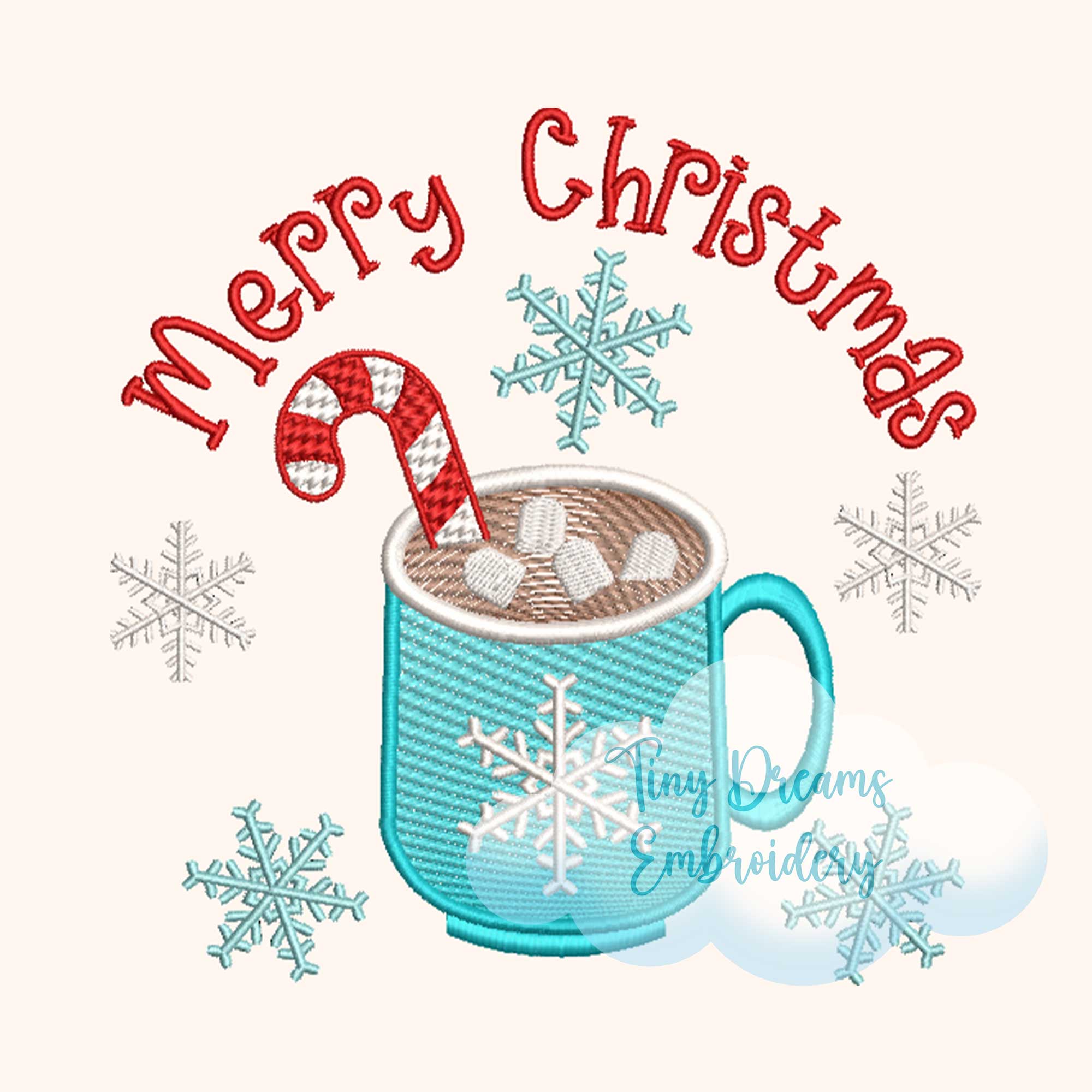 Indulge in holiday warmth with the “Hot Cocoa” Digital Machine Embroidery Design, featuring a festive touch with the “Merry Christmas” design element. Enjoy the comforting imagery of hot chocolate and candy canes adorned with snowflakes, evoking the cozy spirit of winter celebrations.