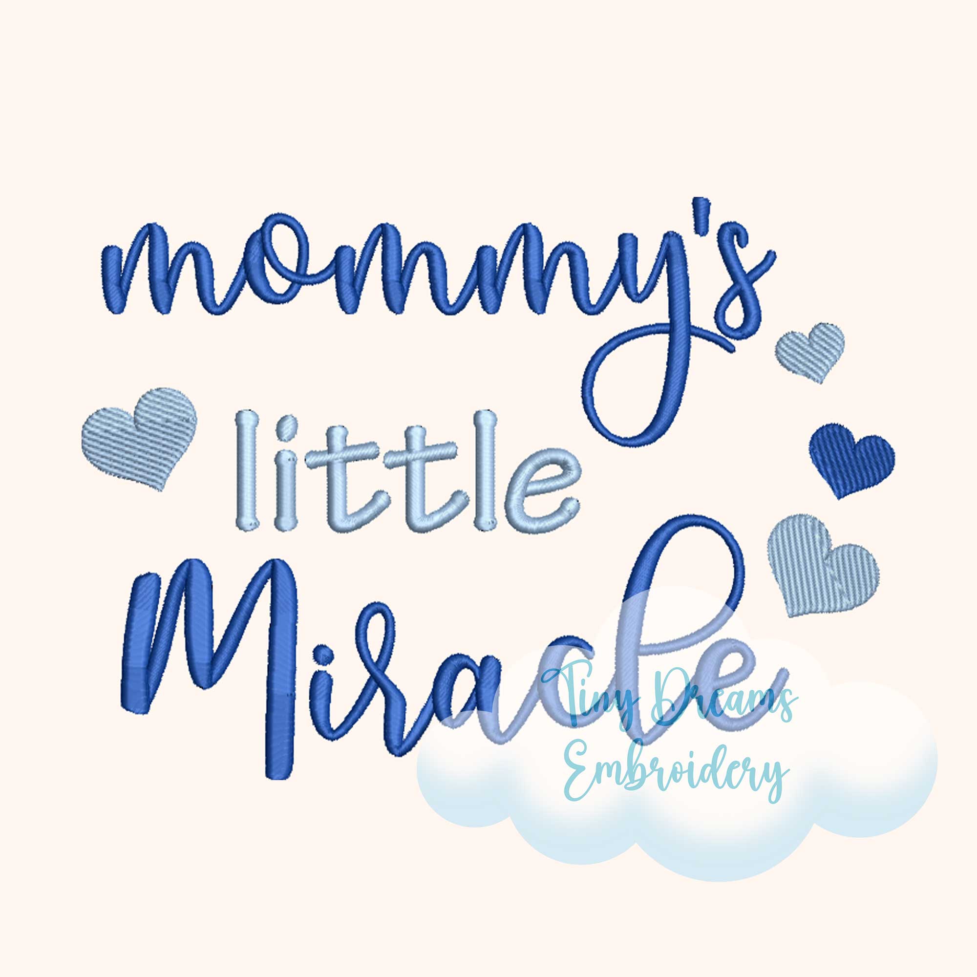 Mommy’s Little Miracle embroidery design, perfect for baby gifts, keepsakes, and nursery projects.