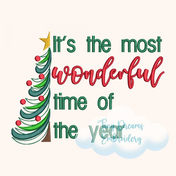 This “Most Wonderful” digital machine embroidery design brings the joy of the Christmas season to life with a festive Christmas tree. Perfect for celebrating the most wonderful time of the year, this design adds holiday cheer to any project.