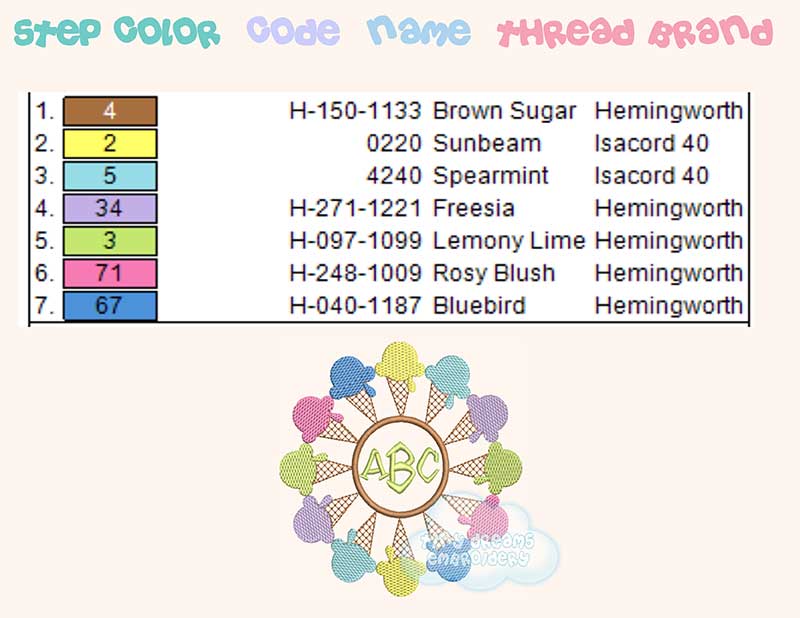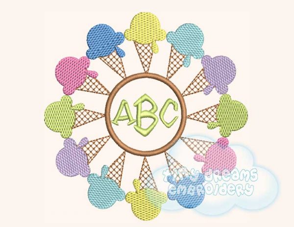 Multicolor ice creams monogram/name (name/monogram/font not included) embroidery design
