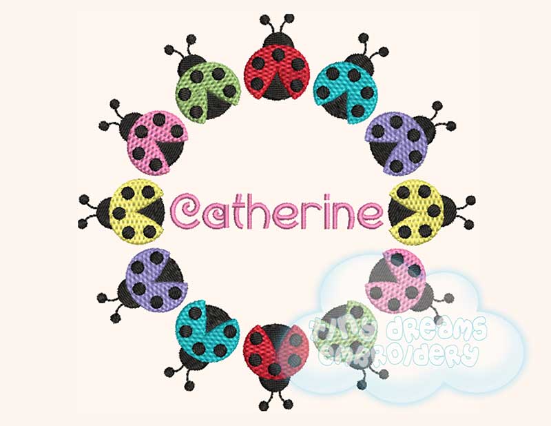 Multicolor ladybug name/monogram (name/monogram/font not included) embroidery design